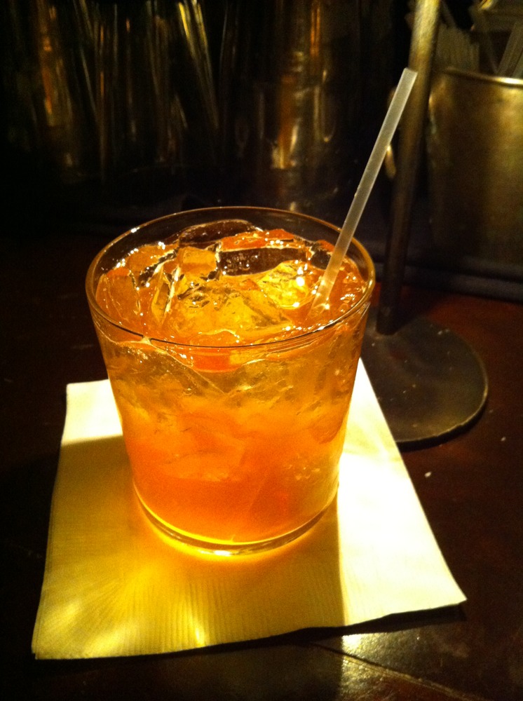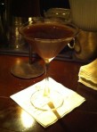 Maura, who had already indulged in a “Blue-Berry Yum Yum,” opted to try the “Malus Domestica” (fancy talk for table apple). This is a sweet treat of Menorval Calvados paired with Meletti Amaro and served on the rocks. The high-end apple brandy mixed with the herbal, botanical properties of the Amaro adds a complexity to this seemingly simple drink. Maura and Nicky enjoyed it, but it was a little sweet for me.