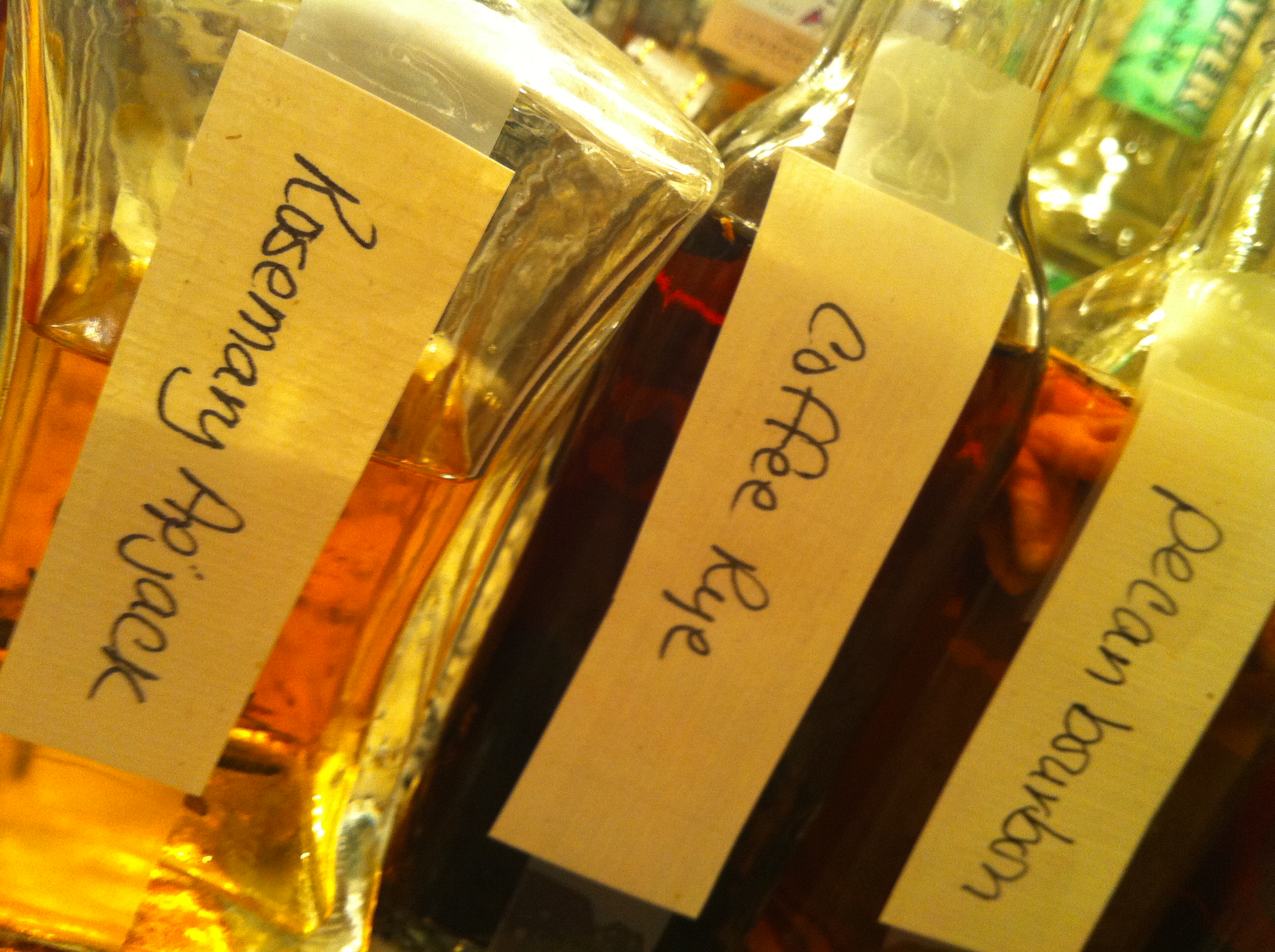So it seemed natural that if I infused Laird’s Applejack with rosemary, I might be able to create the essence of the grilled turkey experience. Nicky and I sampled the infusion and pondered. Then Nicky had a brilliant thought.