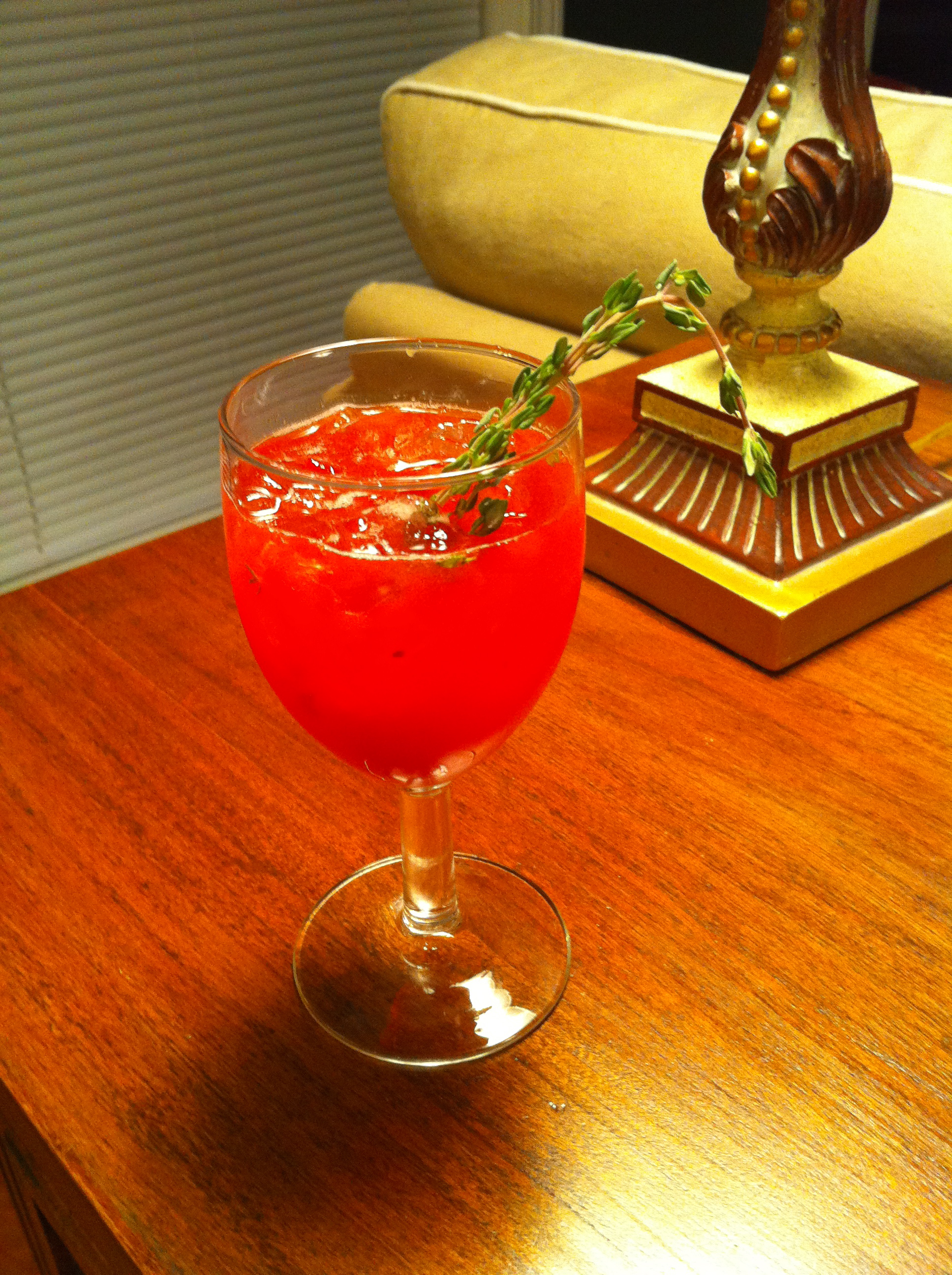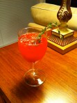 Once I had the infused scotch, my thought was to riff on the classic Blood and Sand (scotch, orange juice, and cherry liqueur), but after several attempts Katruska and I agreed that the toasted nut flavor was completely lost. It was then that Katruska remembered the ingredients of the “Pi” (walnut bourbon, mixed berries, and Stone’s Ginger Wine) at Top Flr. After a few attempts, the “Toasted Red Highlander” was created. Its flavor is light and refreshing with the flavors of thyme appearing first on the palate followed by cranberry and finishing with lovely toasted almond. The red color is also extremely festive with flecks of green. So, take a break from the holiday rush and relax with one of these by the fire. As they say in Scotland, “Slainte” (Too your health)!