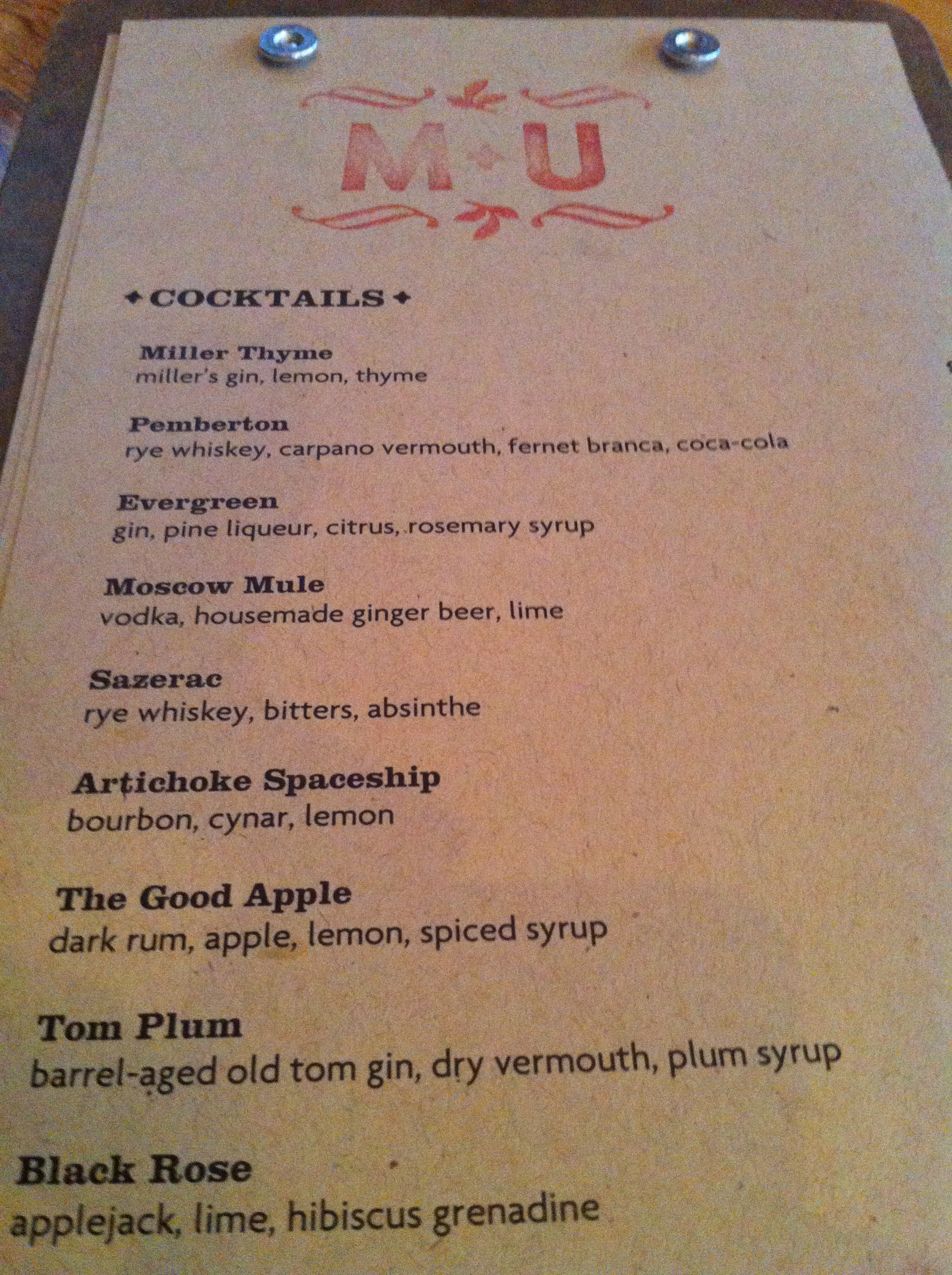 One of the newe st additions to the MU cocktail list is a bourbon and Cynar (an herbal artichoke liqueur) drink named “The Artichoke Spaceship.” Which of course led to our first question: