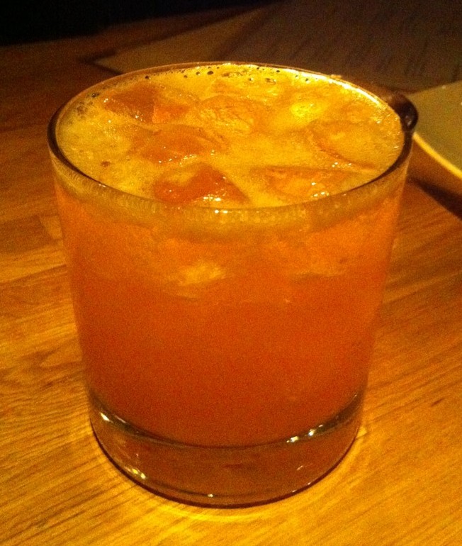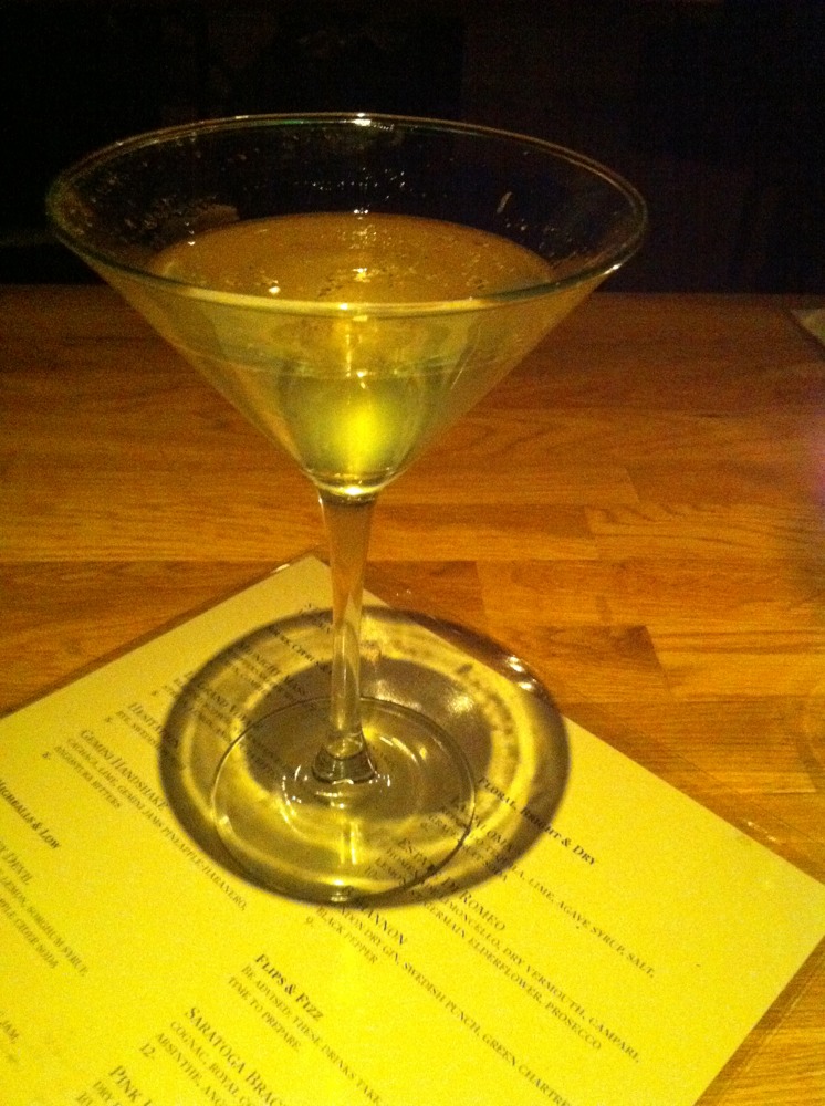 We knew we wanted to try one of the flip/fizz drinks, so we went for the “Saratoga Brace-up.” A mix of cognac, Royal Combier, lemon, sugar, absinthe, Angostura and Peychaud bitters, the drink also features a whole egg instead of just an egg white. The result is a creamier, richer version of a Pisco Sour with a great balance of the orange liqueur and nice definition of the bitters on the back end.