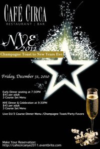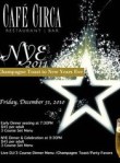 In addition to some great cocktails, Café Circa will offer two seatings for a three course prixe fixe menu. There will be a live DJ, champagne toast and party favors. Reservations required.