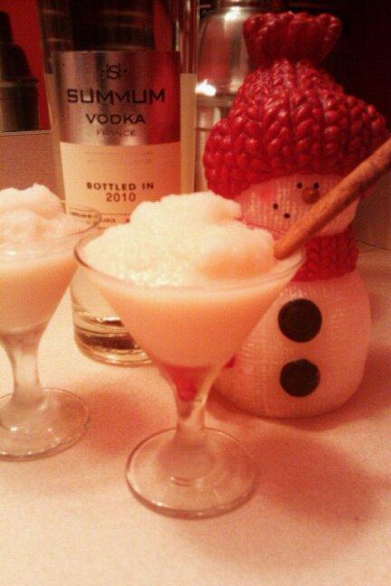 Add fresh clean SNOW to the mix above then stir in half and half or cream until the mixture is as thick or creamy as you desire.