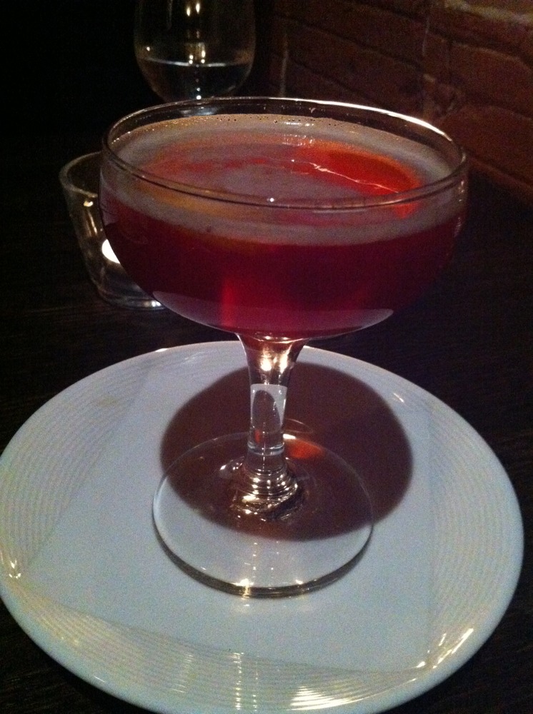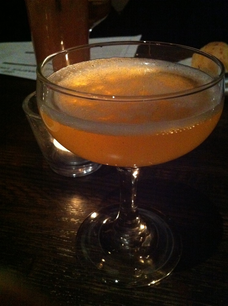 One of my favorite novels is The Great Gatsby, so when I first perused the menu and my eyes landed on the Daisy Buchanan (Basil Hayden, yellow chartreuse, lemon, grenadine, egg white) I was intrigued. Fitzgerald presents this description of Gatsby’s first kiss with Daisy: “Then he kissed her. At his lips’ touch she blossomed for him like a flower and the incarnation was complete.” Well, I won’t go so far as to say that lifting this cocktail to your lips is quite that life changing, but the drink does possess many of the of the appealing characteristics of Daisy Buchannan.