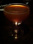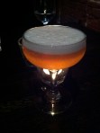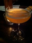“The Amulet” was our second gin-based drink of the evening. Slater turns to Hendricks gin for this one. Good choice. The fuller tasting Hendricks stands up well to the apricot brandy, Dolin dry vermouth, and the grapefruit. The additional touch of Pernod did not overwhelm, but stayed in its place, nicely tying the flavors together.