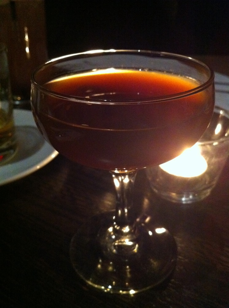 Roman went the traditional route and began with a Sloe Gin Fizz (Plymouth sloe gin, lemon, sugar, egg white, soda water). Perfectly crafted, this has always struck me as a terrific drink to sip out on the deck in the summer. Light, fluffy, and easy to enjoy.
