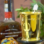 Interestingly, Early Times is not a bourbon, but is a whiskey. Not to fret. If you want bourbon, simply order the expensive version at the Derby, which is made with the Brown-Forman sister brand, Woodford Reserve. Woodford Reserve is the “official bourbon” of the Kentucky Derby. How much will you spend for the high-end julep? Plan on dropping a mere $1,000. Served in gold-plated cups with silver straws, the mint used is from Ireland and the sugar from Australia. (Proceeds from these sales have benefited charitable causes dedicated to retired race horses.)