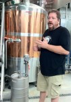 The malted grain (sprouted and dried to break down the sugars) is placed in a mash tun with some 150+ degree water for mashing, making a sort of cereal mash. The rich sugar water – the wort – is moved/pumped to the next vessel, a copper kettle tank. Then the fun happens with the boiling of the hops and the addition of other flavors – herbs, sugars, whatever. It’s an important stage because this is where your beer gets its flavor, color, aroma and all-around personality. Then you quickly cool the wort down so you can add the yeast and let the fermenting process begin. The next step is racking the beer by moving it into a conditioning tank where for about three weeks the beer “finds itself.” No filtering here at the Wrecking Bar brewery; they just clarify to save the full flavors. The whole process takes about three weeks.