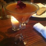 A delightful twist on the classic Pisco Sour, is the Macchu Peachu, a Georgia peach version of the sour. Porton Pisco is blended with lemon juice, peach nectar, apricot nectar, apricot brandy, bar sugar and an egg white. The frothy cocktail is presented in a flute and topped with Fee’s peach bitters and Angostura bitters. Light but complex, this was a favorite for me.