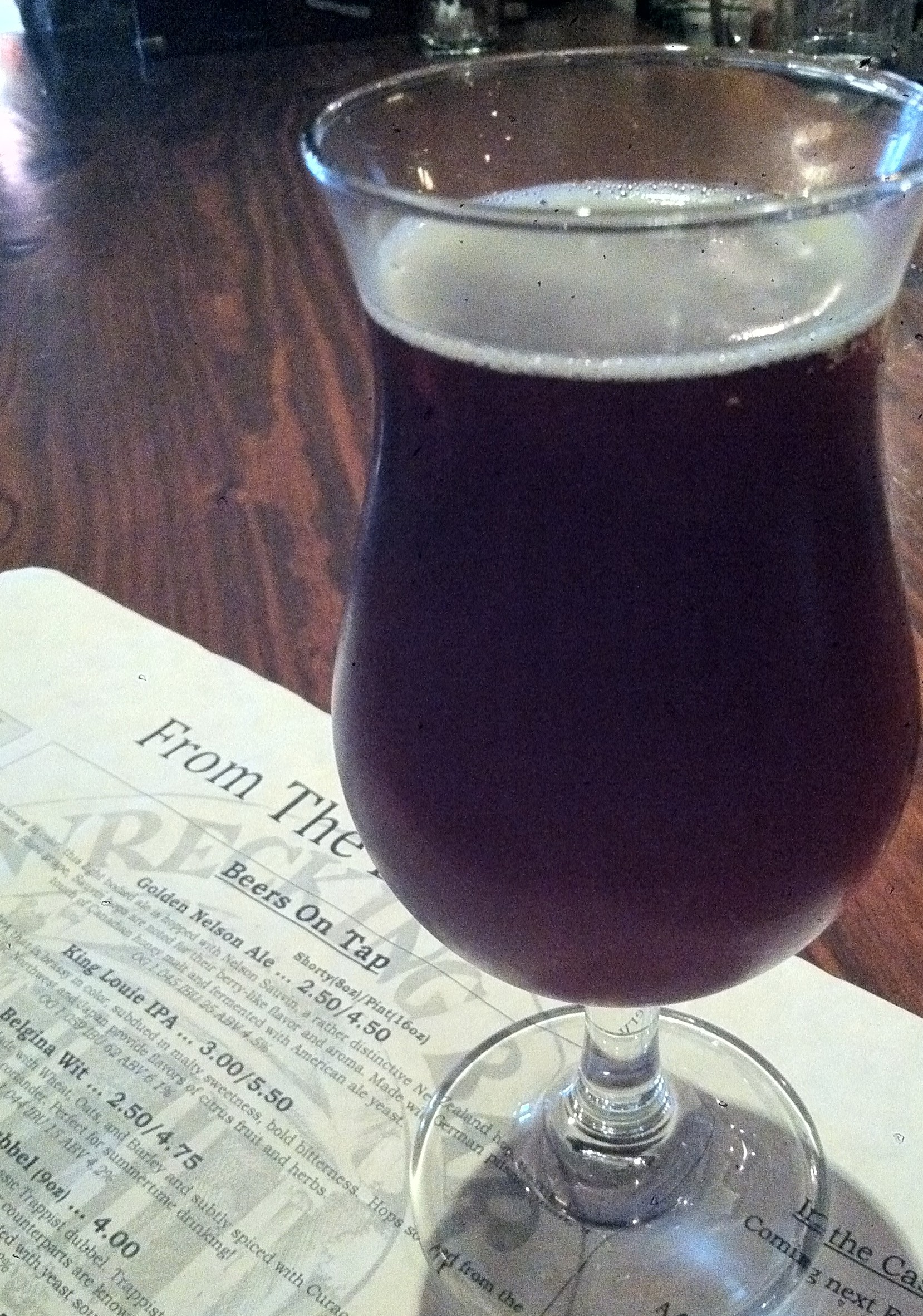 The Piper worked his way through many of the featured Wrecking Bar beers on tap. He started with the Abbey Dubbel, a full-bodied Belgian brown ale. Emulating the classic Trappist Dubbel, the Abbey Dubbel is rich and malty, with the flavors enhanced by a house-made candi sugar.