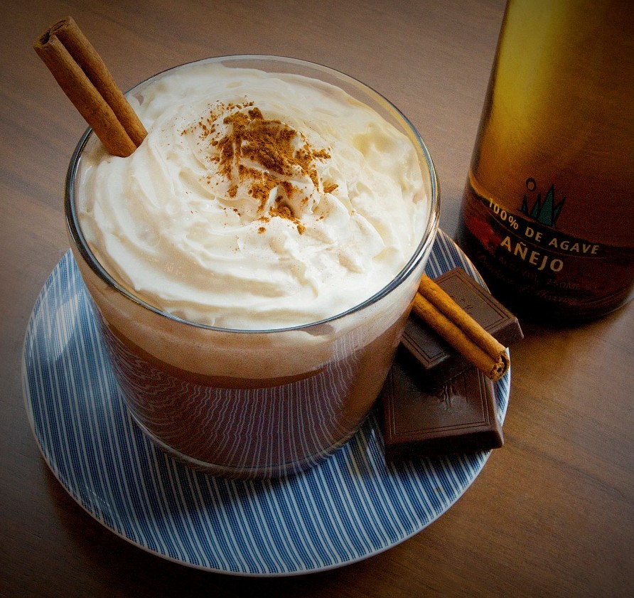 Freshly whipped cream top Mix all ingredients in a pot. Heat up till boiling. Pour into coffee cup and top with whipped cream. Garnish with skeleton shaped cinnamon.