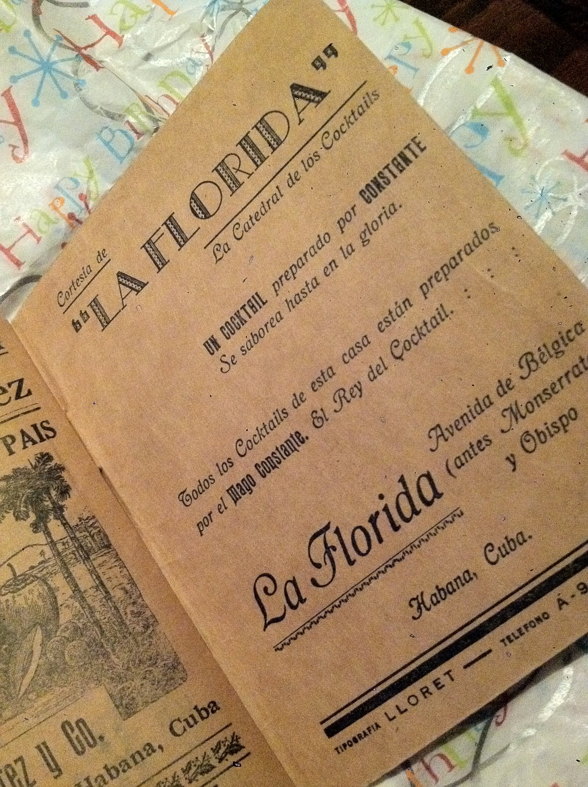 Our friend Stevenson Rosslow (general manager at Wrecking Bar) is fortunate enough to own a copy of the 1934 La Florida bar guide. It was a birthday gift that he still keeps carefully under wrap. On one of our visits with Stevenson, he graciously pulled the guide out and let us look through the pages of cocktail recipes. Truly a treasure!
