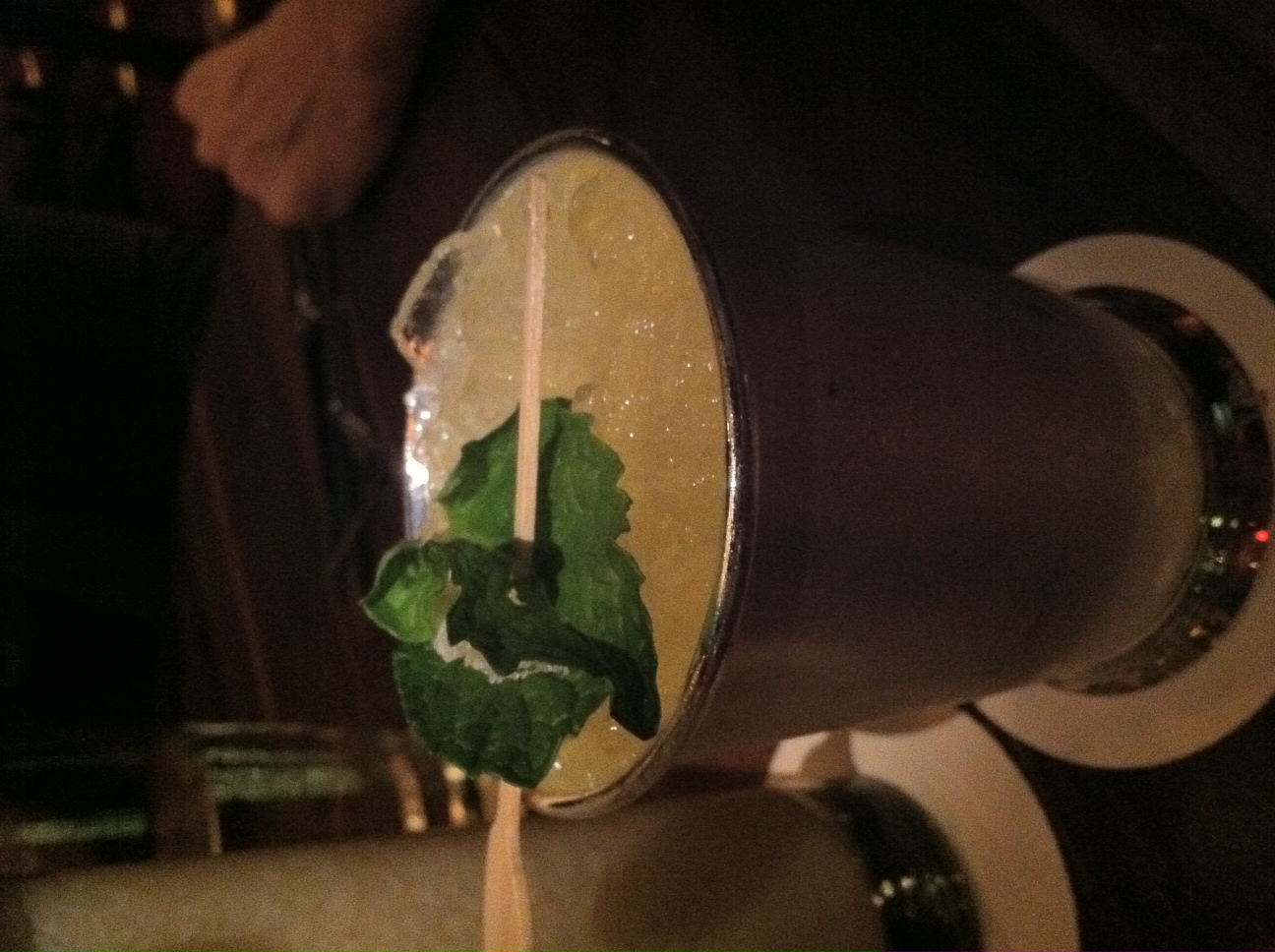 This creation is somewhat of a nod to the Moscow Mule. Herradura Reposado and Fidencio Mezcal are mixed with fresh ginger and a touch of chamomile aromas. The drink is served in the traditional style of a Moscow Mule but in a pewter cup instead of copper. Nicely balanced and a touch of the smoke from the mescal.
